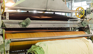 Участок каландрования тканей производит листование и профилирование резиновых смесей, обкладку резиновой смесью. Сущность процесса обкладки тканей состоит в наложении слоя резиновой смеси на ткань с некоторым давлением при прохождении её через зазор между валками каландра, вращающимися с одинаковой скоростью. Применяют как одностороннюю так и двухстороннюю обкладку.